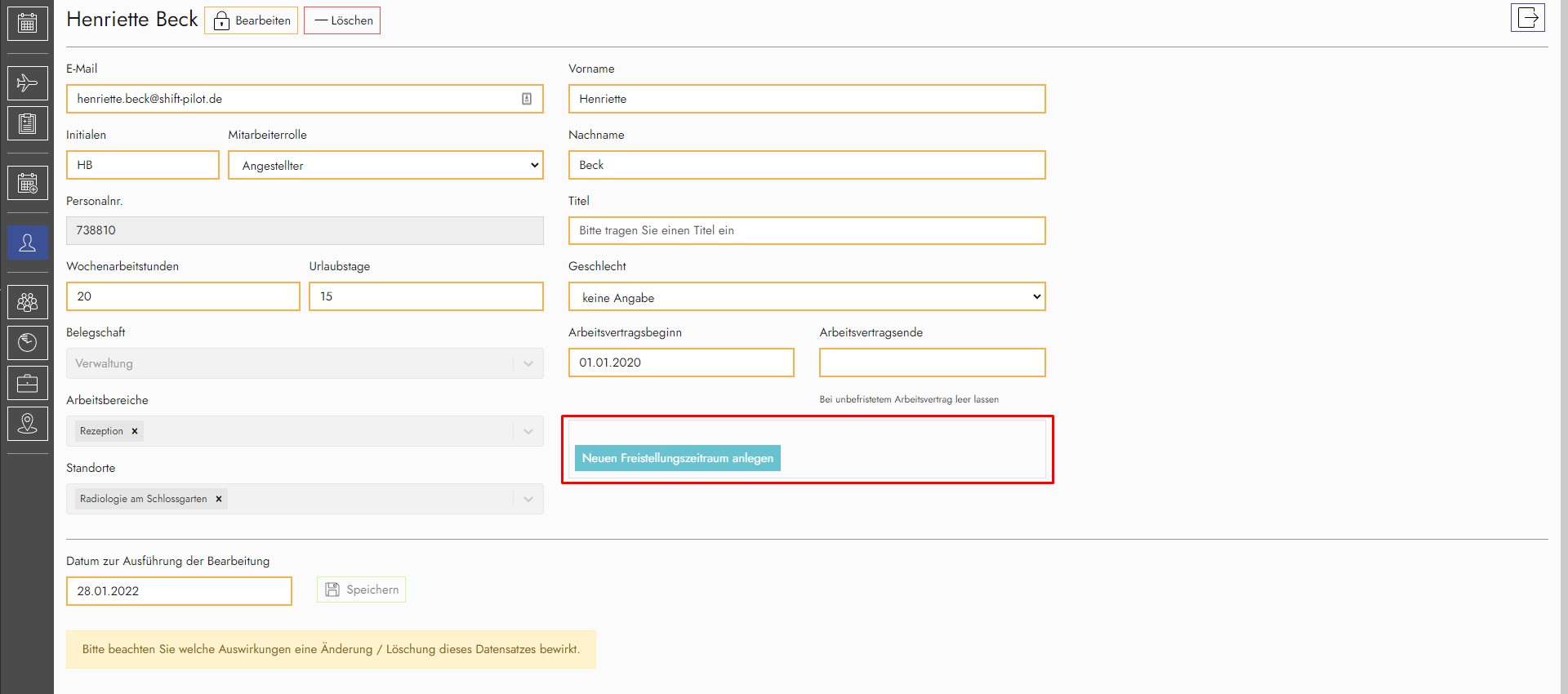 Das Löschen der Freistellung erfolgt über den Button beim Freistellungs-Eintrag: