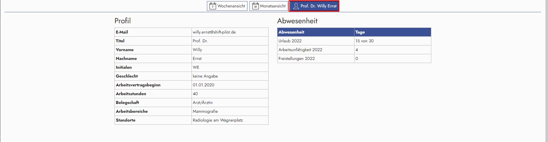 Klickt der Mitarbeitende auf seinen Namen kann er seinen hinterlegten Informationen einsehen:
