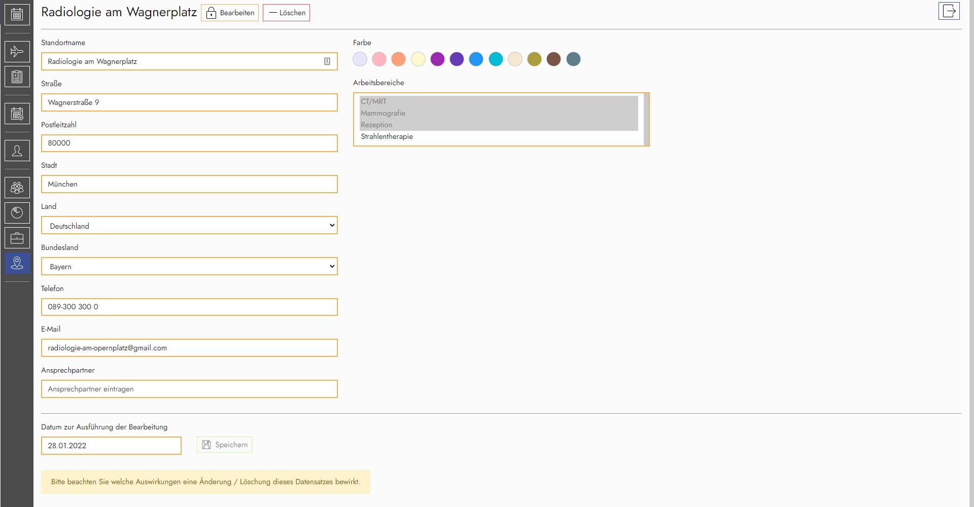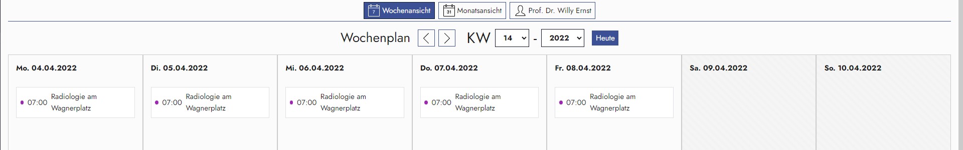 Beispiel: Planung einer Radiologischen Praxis am Standort Wagnerplatz von 01.04.2022 bis 31.06.2022 (Quartal 2 2022)