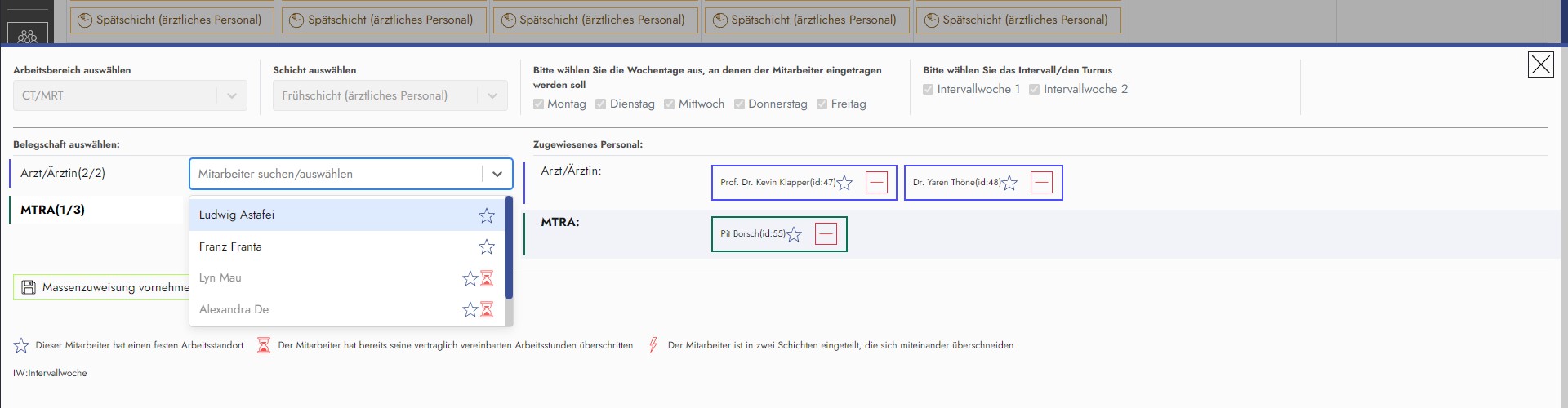 Über das “+”-Symbol können die zur Verfügung stehenden Mitarbeitenden eingeplant werden: