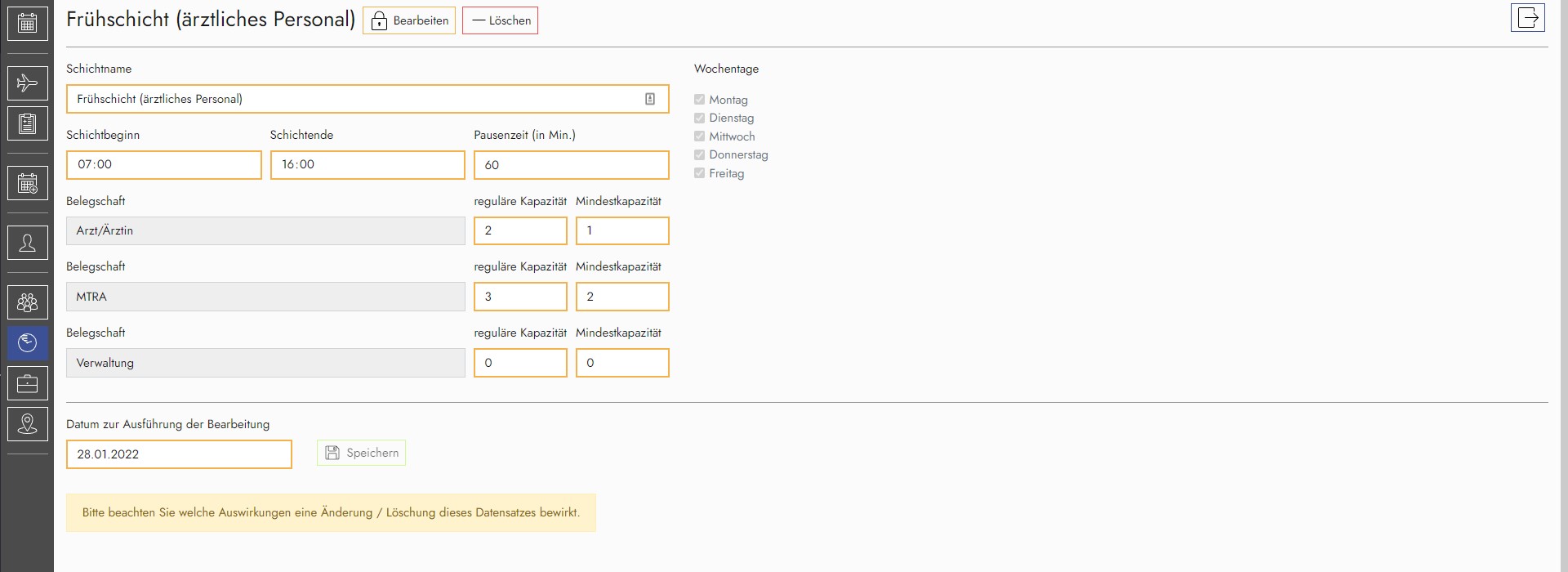 Ist der Planende beispielsweise auf der Einzelansicht einer Schicht, erhält er Informationen, wie eine Schicht bearbeiten kann bzw. wie diese gelöscht werden kann.